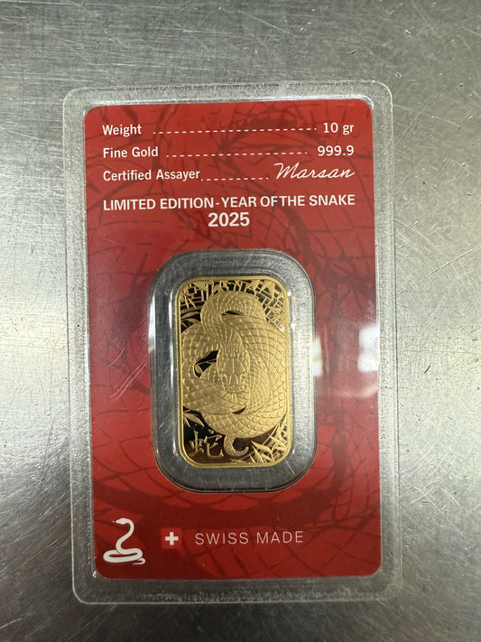 10 gram 2025 Lunar Year of the Snake Gold Bar | Argor-Heraeus